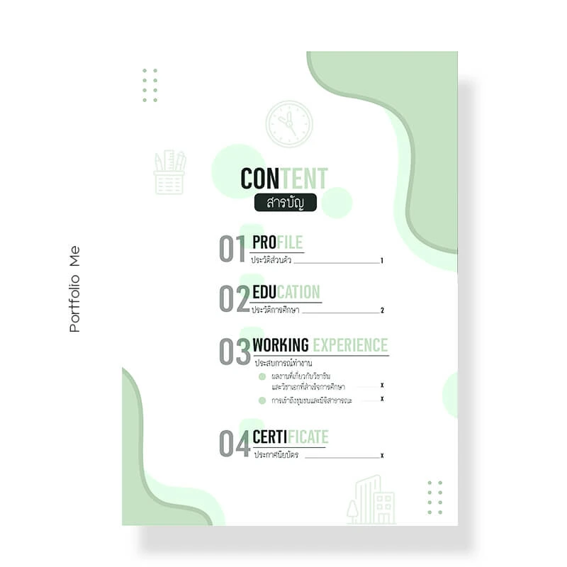 แฟ้มเราใช้ได้กับครูผู้ช่วยทุกสังกัด หรือใช้สมัครงานราชการ (อปท.) ก็ได้ เพราะเป็นเทมเพลตที่สามารถแก้ไขได้อย่างยืดหยุ่น ปรับแต่งให้ตรงตามเกณฑ์ของงานนั้น ๆ ได้เลย ประกอบด้วยหน้าดังนี้