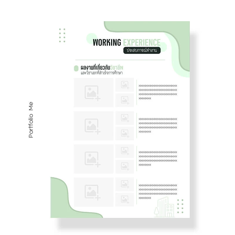 • ผลงานงานที่เกี่ยวข้องกับวิชาชีพและวิชาเอกที่สำเร็จการศึกษา